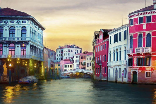 Evening On the Canal White Modern Wood Framed Art Print with Double Matting by Bolokofsky, Ronald
