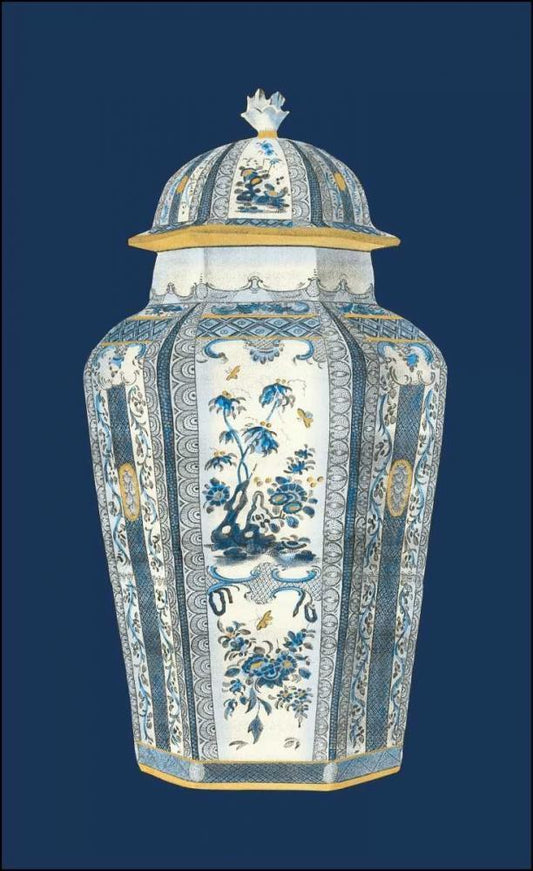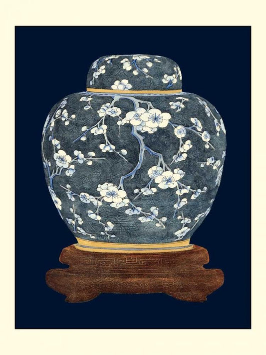 Asian Urn in Blue and White I Black Ornate Wood Framed Art Print with Double Matting by Vision Studio