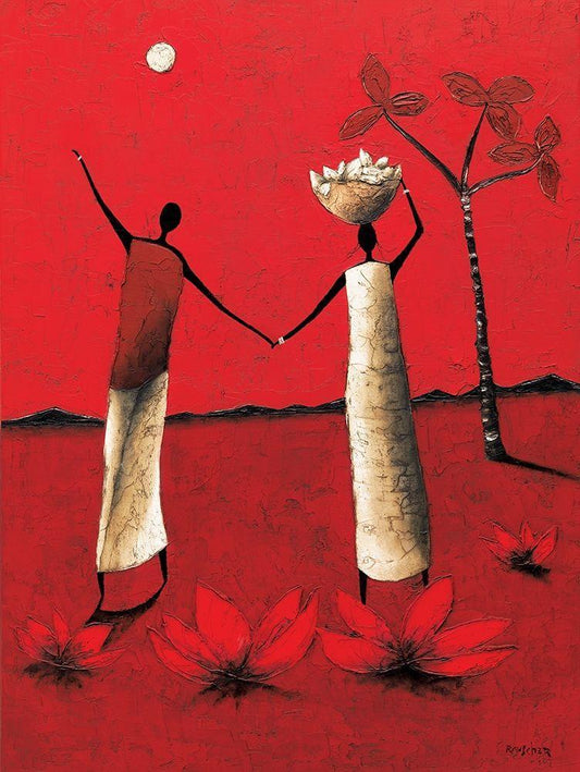 Bedouin rouge White Modern Wood Framed Art Print with Double Matting by Letestu, Yann