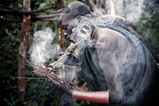 Firelighting White Modern Wood Framed Art Print with Double Matting by Cole, Trevor