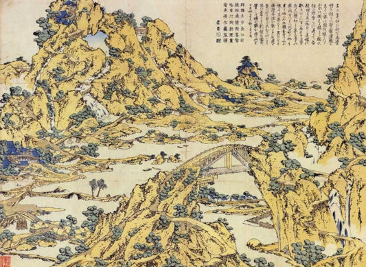 Landscape With A Hundred Bridges 1832 White Modern Wood Framed Art Print with Double Matting by Hokusai