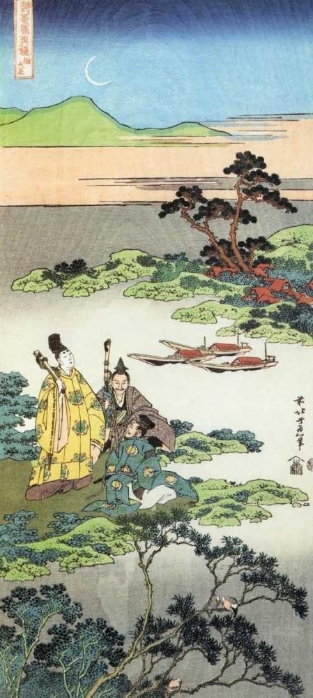 Three Noblemen By A Lake White Modern Wood Framed Art Print with Double Matting by Hokusai