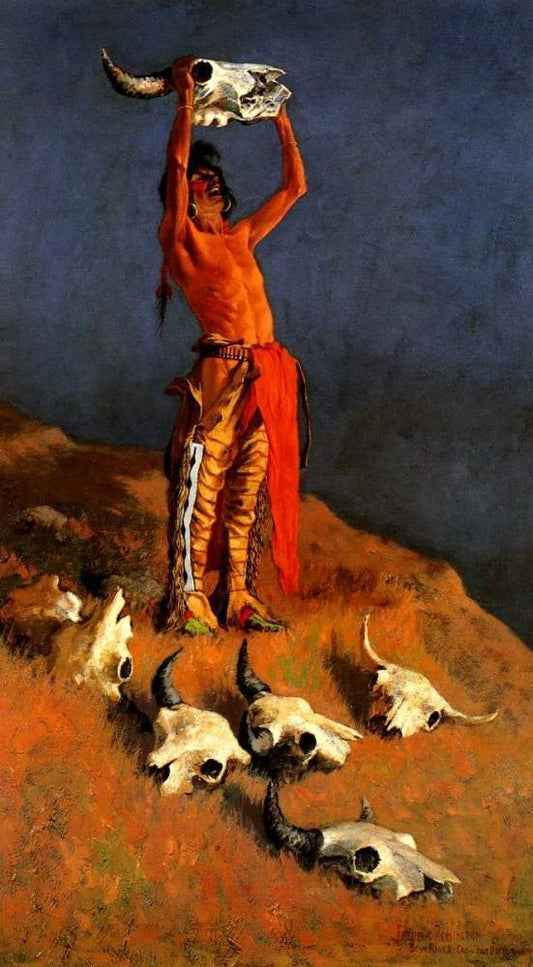 Conjuring Back The Buffalo White Modern Wood Framed Art Print with Double Matting by Remington, Frederic