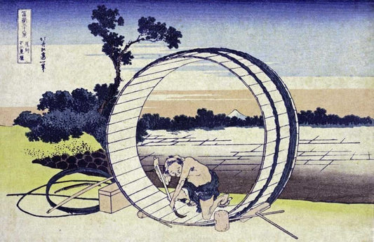 Fields In Owari Province White Modern Wood Framed Art Print with Double Matting by Hokusai