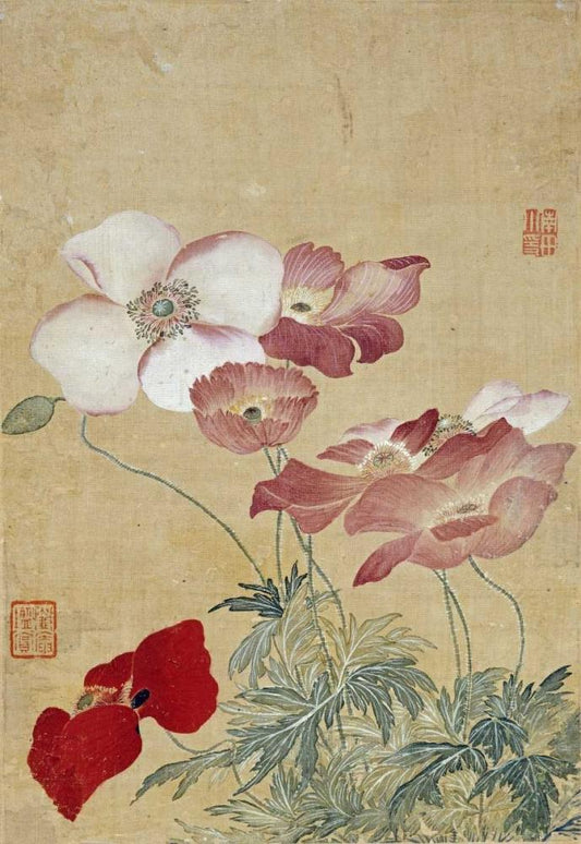 Poppies White Modern Wood Framed Art Print with Double Matting by Shouping, Yun