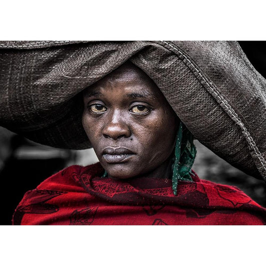 Ethiopian Woman Back Home. Gold Ornate Wood Framed Art Print with Double Matting by Inazio Kuesta, Joxe
