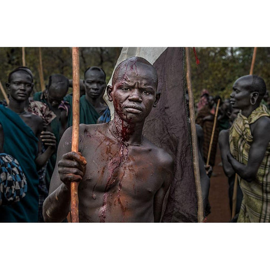 The Winner Of A Donga Fight In Ethiopia. Gold Ornate Wood Framed Art Print with Double Matting by Inazio Kuesta, Joxe