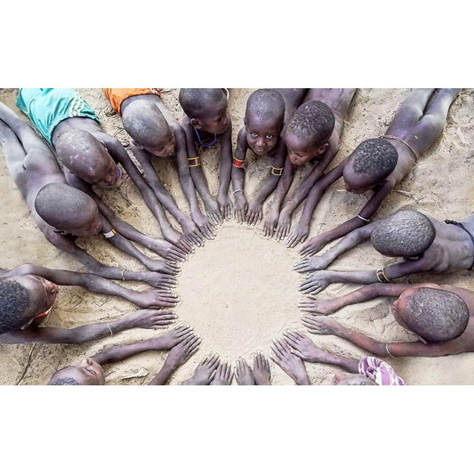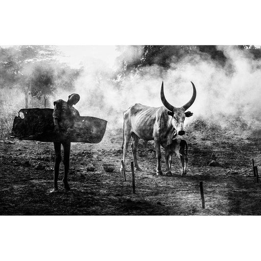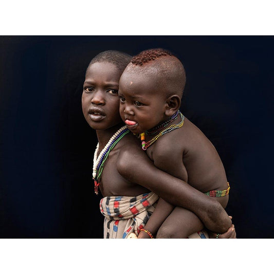 Mundari Chlid Carrying Dung - South Sudan Gold Ornate Wood Framed Art Print with Double Matting by Inazio Kuesta, Joxe