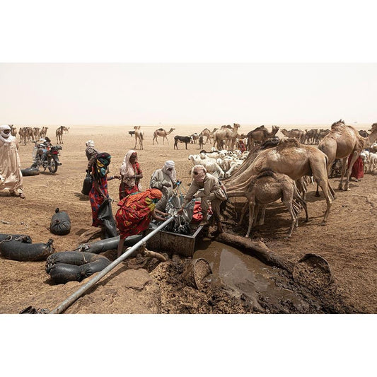 So Much ActIVity Around The Well At Borkou Desert-Tchad Gold Ornate Wood Framed Art Print with Double Matting by Molina, Elena