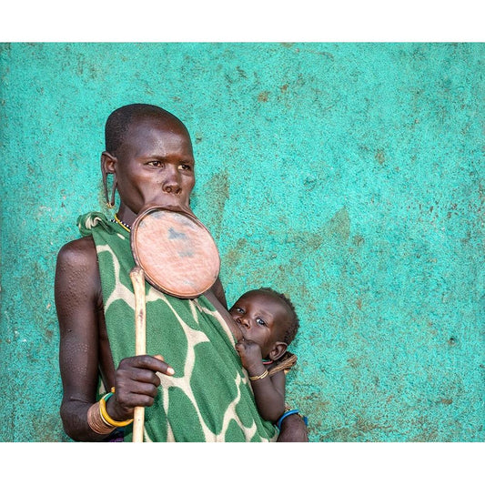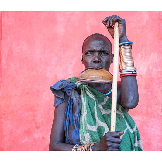 The Largest Plate In The Mursi Tribe-Ethiopia Gold Ornate Wood Framed Art Print with Double Matting by Wiener, Iris