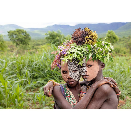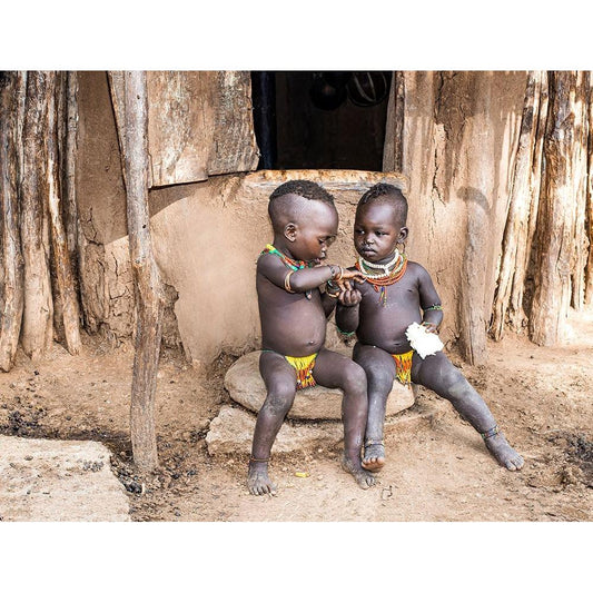 Surmi Tribe Children Cleaning Their Hands Before Starting To Eat - Ethiopia Gold Ornate Wood Framed Art Print with Double Matting by Inazio Kuesta, Joxe