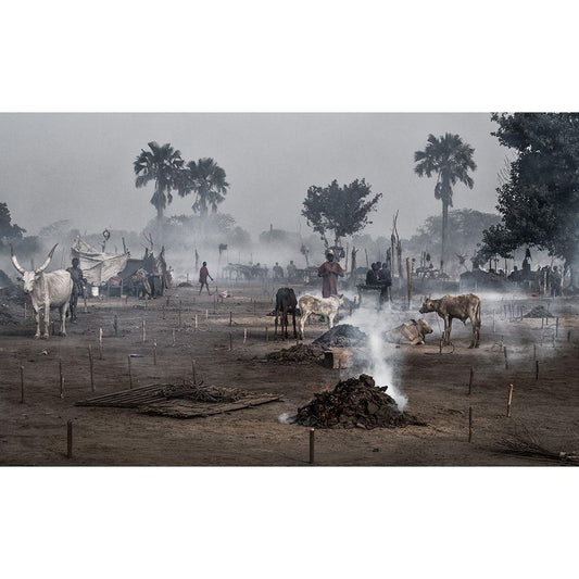 Life In A Mundari Cattle Camp - South Sudan Gold Ornate Wood Framed Art Print with Double Matting by Inazio Kuesta, Joxe