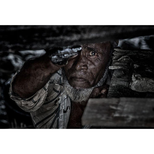 Man Tarring The Keel Of A Ship - Bangladesh Gold Ornate Wood Framed Art Print with Double Matting by Inazio Kuesta, Joxe