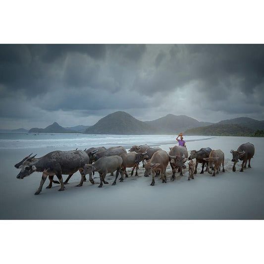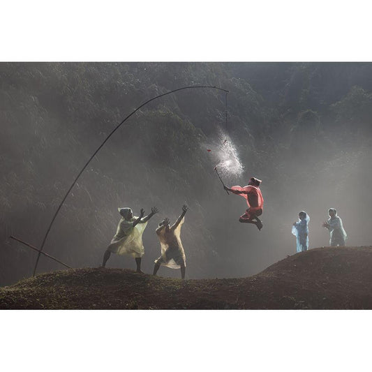 Pecah Balon Gold Ornate Wood Framed Art Print with Double Matting by Suhardjo, Lisdiyanto