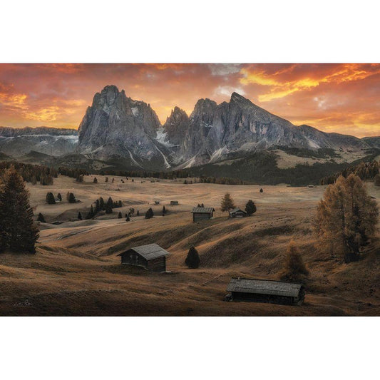 Dramatic Sunset in the Dolomites Gold Ornate Wood Framed Art Print with Double Matting by Podt, Martin