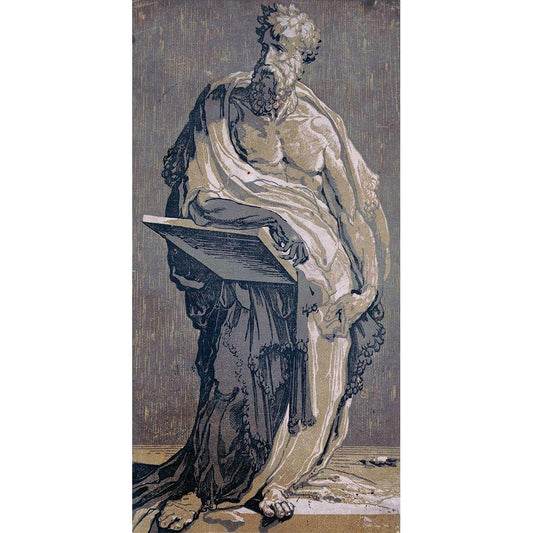 Hectus with Tablet Gold Ornate Wood Framed Art Print with Double Matting by Stellar Design Studio