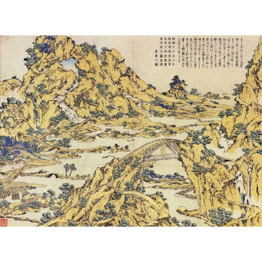 Landscape With A Hundred Bridges 1832 Gold Ornate Wood Framed Art Print with Double Matting by Hokusai