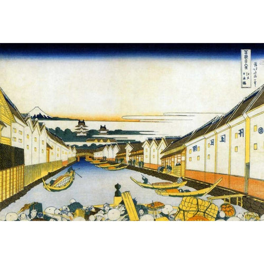 Mount Fuji And Edo Castle Seen From Nihonbashi 1834 Gold Ornate Wood Framed Art Print with Double Matting by Hokusai