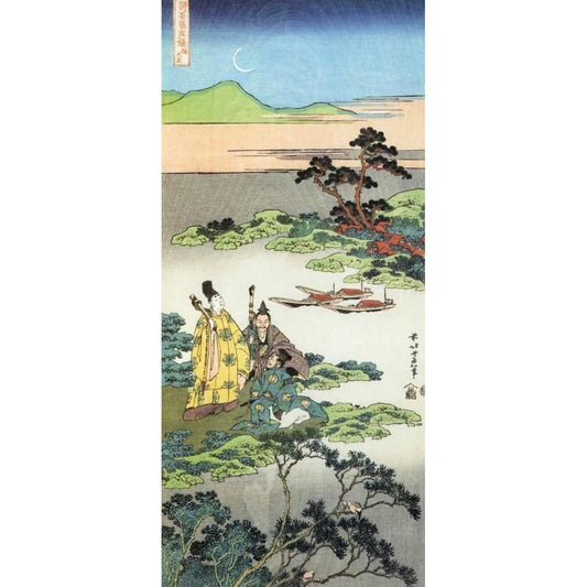 Three Noblemen By A Lake Gold Ornate Wood Framed Art Print with Double Matting by Hokusai