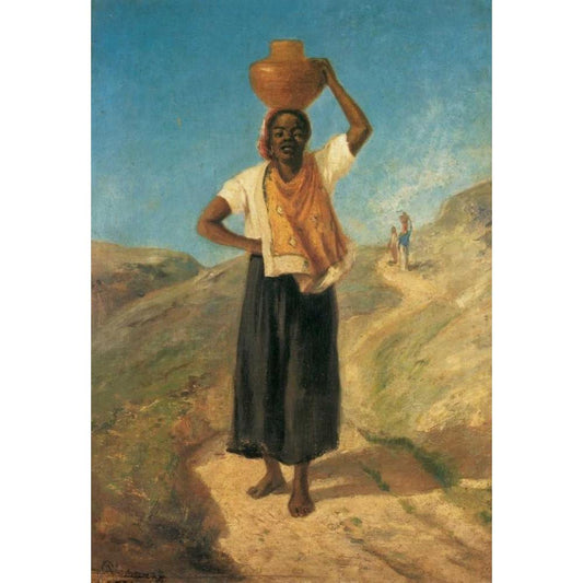 Woman Carrying A Pitcher On Her Head St Thomas 1854 Gold Ornate Wood Framed Art Print with Double Matting by Pissarro, Camille