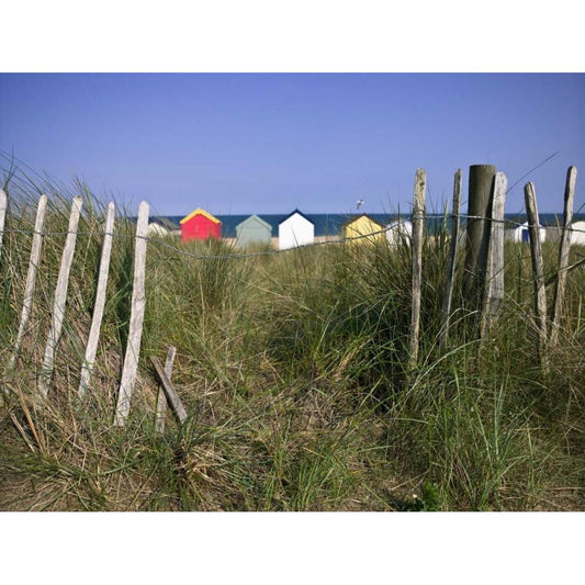 Wodden Fence at beach with huts in the Background Gold Ornate Wood Framed Art Print with Double Matting by Frank, Assaf