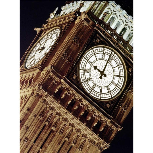 Low angle view of big ben at night, Parliament, England Gold Ornate Wood Framed Art Print with Double Matting by Frank, Assaf
