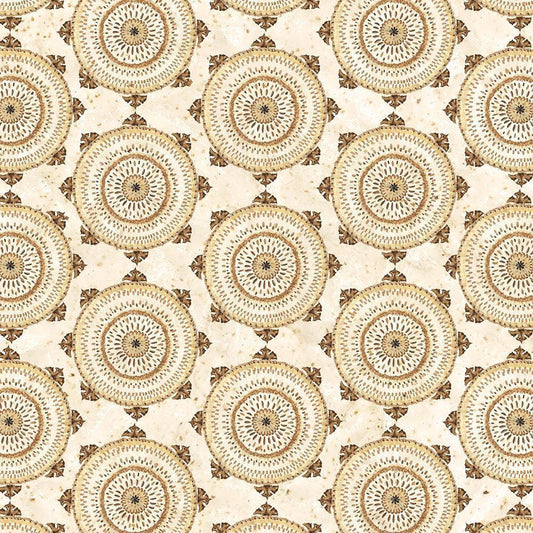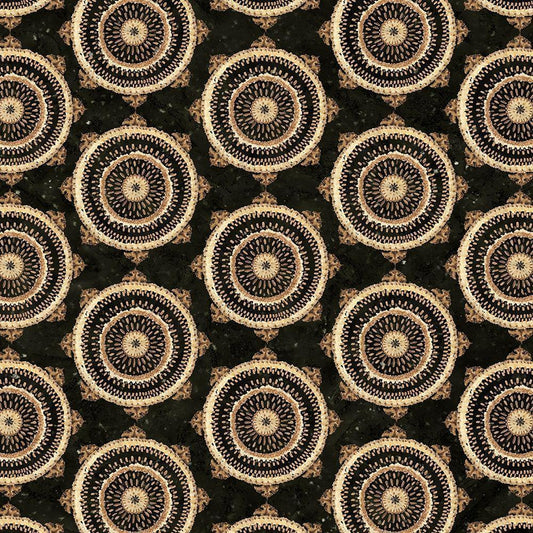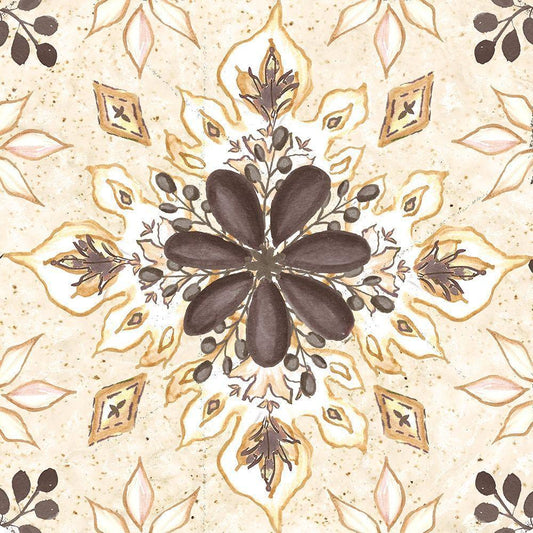 Warm Tribal Texture Floral Medallion Gold Ornate Wood Framed Art Print with Double Matting by Tre Sorelle Studios