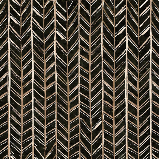 Warm Tribal Texture Chevron black Gold Ornate Wood Framed Art Print with Double Matting by Tre Sorelle Studios