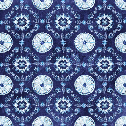 Artisan Medallions Indigo III Gold Ornate Wood Framed Art Print with Double Matting by Tre Sorelle Studios
