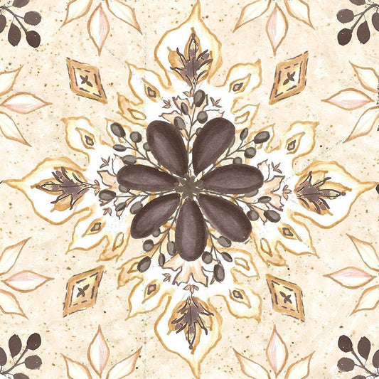 Warm Tribal Texture Floral Medallion White Modern Wood Framed Art Print with Double Matting by Tre Sorelle Studios