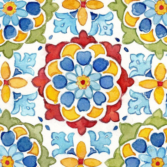 Turkish Tile I White Modern Wood Framed Art Print with Double Matting by Coulter, Cynthia