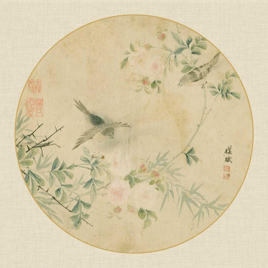 Oriental Bird Silk II Gold Ornate Wood Framed Art Print with Double Matting by Unknown
