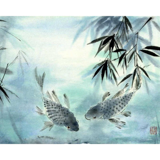 Playful Koi II Gold Ornate Wood Framed Art Print with Double Matting by Bryant, Rebecca