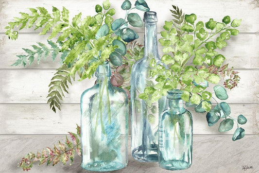 Vintage Bottles and Ferns Landscape White Modern Wood Framed Art Print with Double Matting by Tre Sorelle Studios