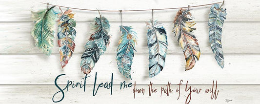 Tribal Feathers Sign White Modern Wood Framed Art Print with Double Matting by Tre Sorelle Studios