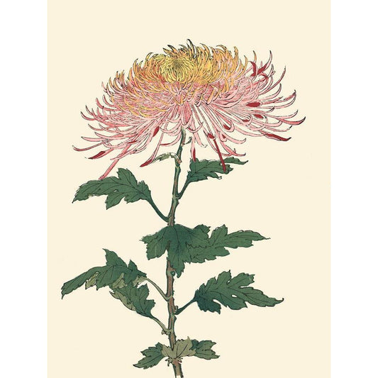 Chrysanthemum Woodblock IV Gold Ornate Wood Framed Art Print with Double Matting by Unknown