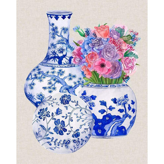 Delft Blue Vases I Gold Ornate Wood Framed Art Print with Double Matting by Wang, Melissa