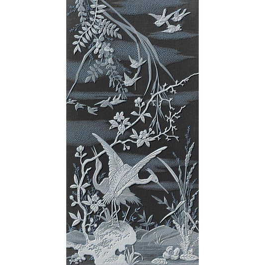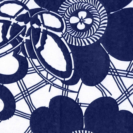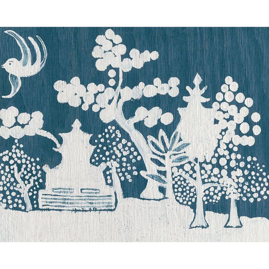 Indigo Floral Katagami III Gold Ornate Wood Framed Art Print with Double Matting by Vision Studio