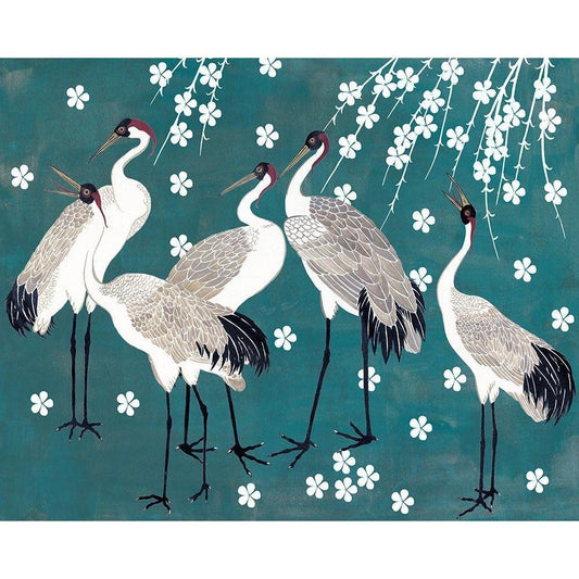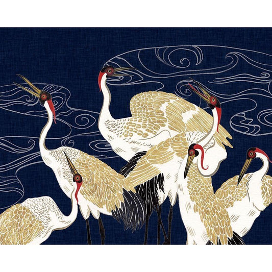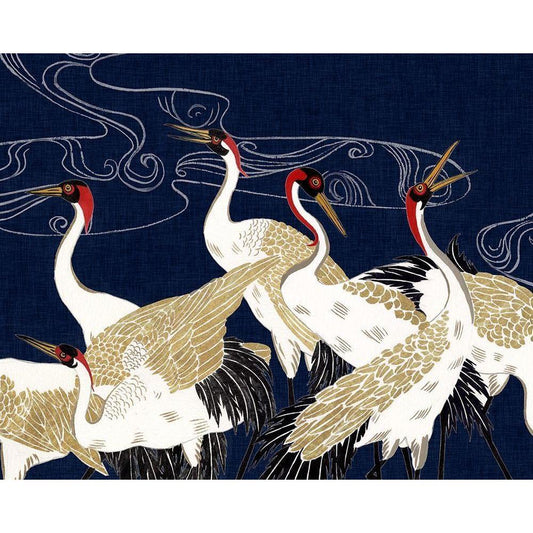 Crane at Night I Gold Ornate Wood Framed Art Print with Double Matting by Wang, Melissa