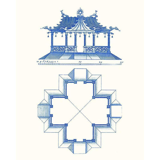 Pagoda Design IV Gold Ornate Wood Framed Art Print with Double Matting by Vision Studio