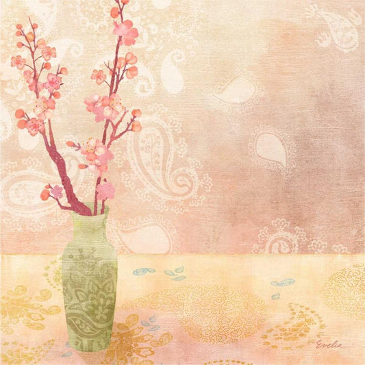 Vase of Cherry Blossoms I Gold Ornate Wood Framed Art Print with Double Matting by Evelia Designs