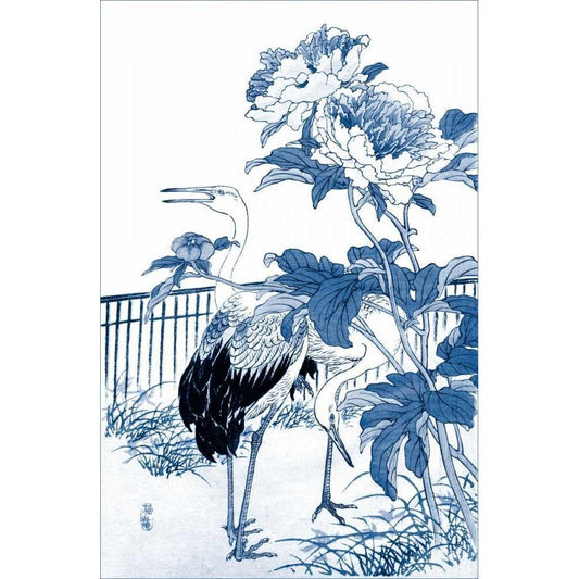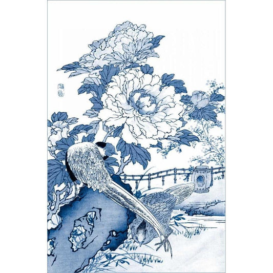 Blue and White Asian Garden II Gold Ornate Wood Framed Art Print with Double Matting by Vision Studio