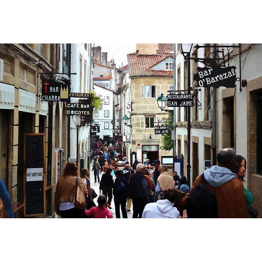 Village Walk Black Modern Wood Framed Art Print by Bolokofsky, Ronald