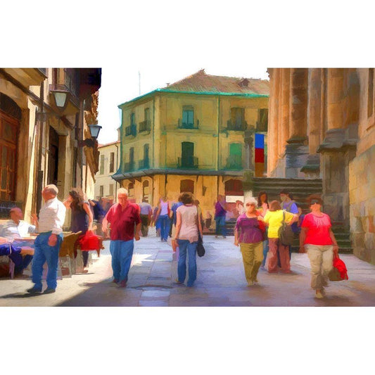 Crowded Spanish Street Black Modern Wood Framed Art Print by Bolokofsky, Ronald