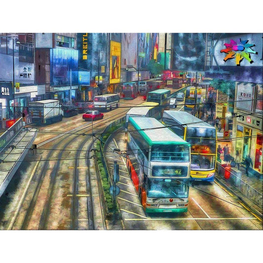 Hong Kong Bus Lines Black Modern Wood Framed Art Print by Bolokofsky, Ronald