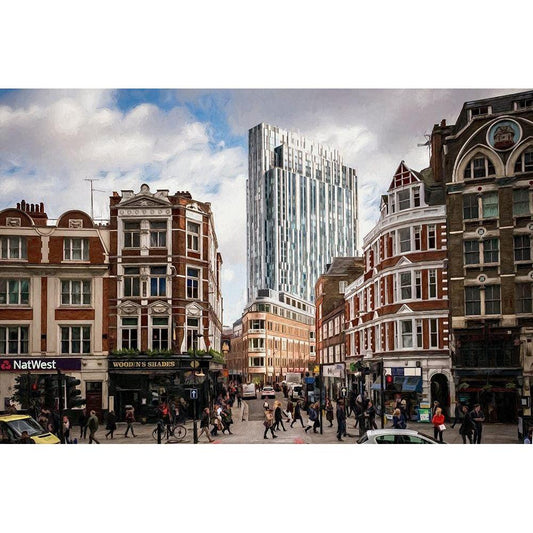 London Street Shops Black Modern Wood Framed Art Print by Bolokofsky, Ronald