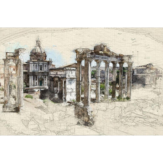 Italian Ruins Architectural Sketch Black Modern Wood Framed Art Print by Bolokofsky, Ronald