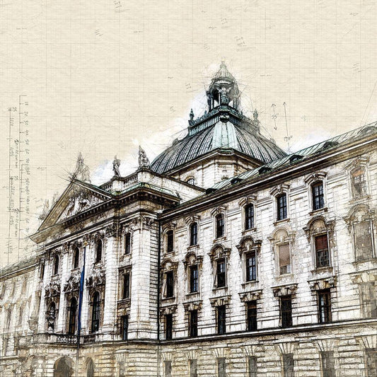 Munich Courthouse Black Modern Wood Framed Art Print by Bolokofsky, Ronald