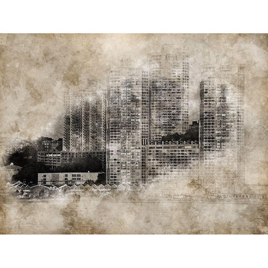 Vintage Skyline Black Modern Wood Framed Art Print by Bolokofsky, Ronald