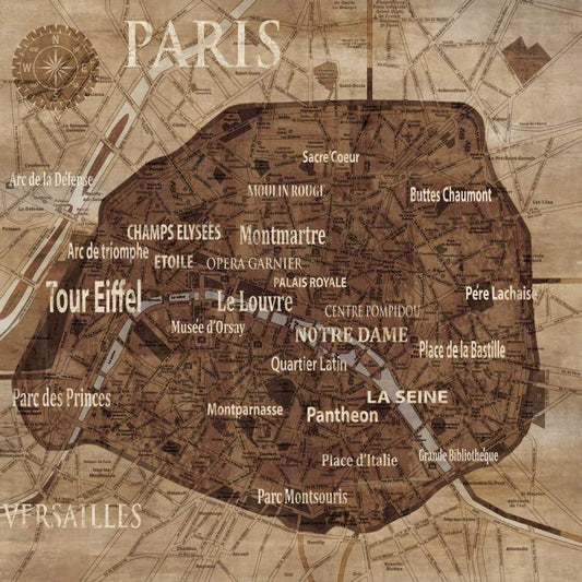 Map of Paris Black Modern Wood Framed Art Print by Wilson, Luke